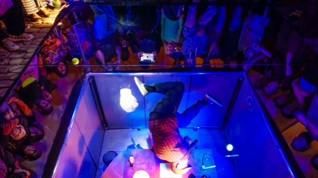 DIEP is een woordloze, zintuig ontwrichtende, zwaartekracht-tartende performance van 10 minuten die je wereld ondersteboven zet. Een botsing tussen theater en mindfuck: de speler hangt ondersteboven (boven een hele grote spiegel), terwijl jouw perspectief radicaal wordt uitgedaagd.
