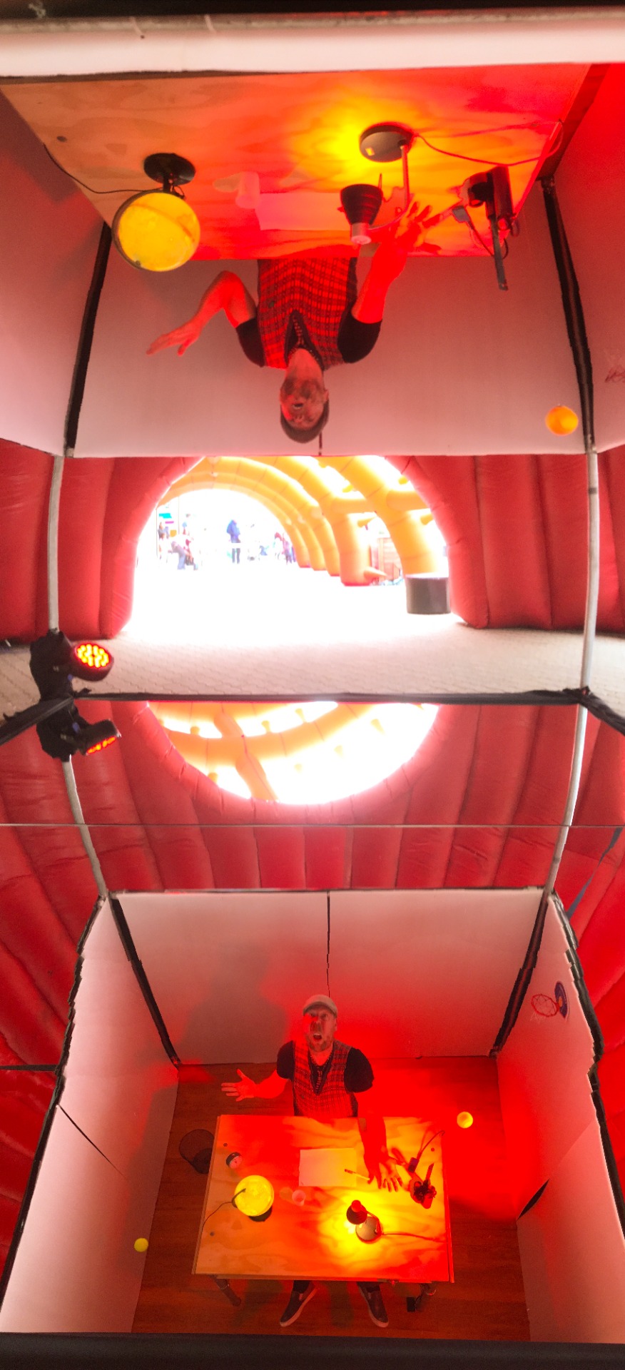 DIEP is een woordloze, zintuig ontwrichtende, zwaartekracht-tartende performance van 10 minuten die je wereld ondersteboven zet. Een botsing tussen theater en mindfuck: de speler hangt ondersteboven (boven een hele grote spiegel), terwijl jouw perspectief radicaal wordt uitgedaagd.