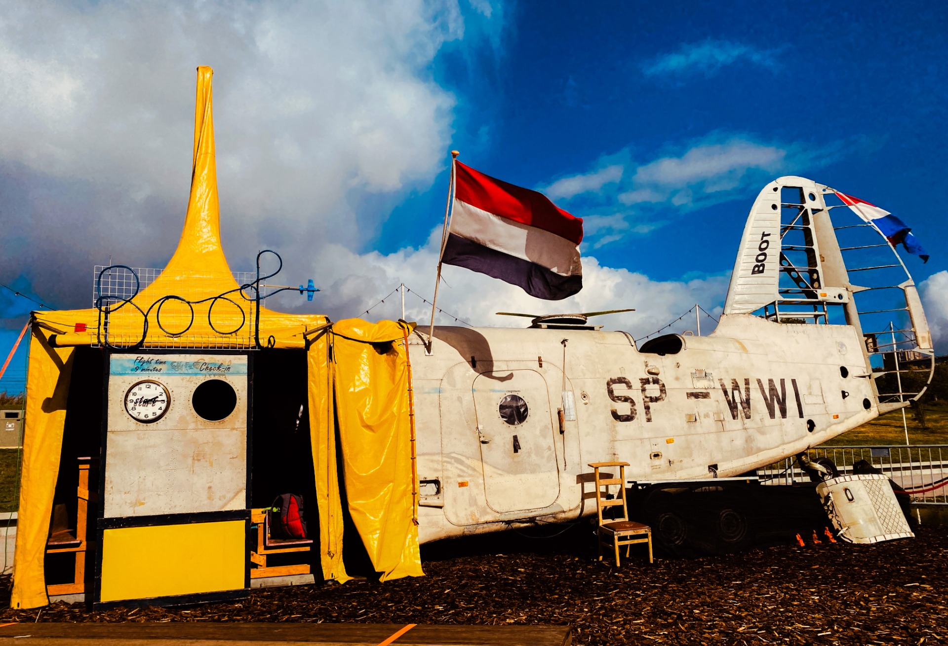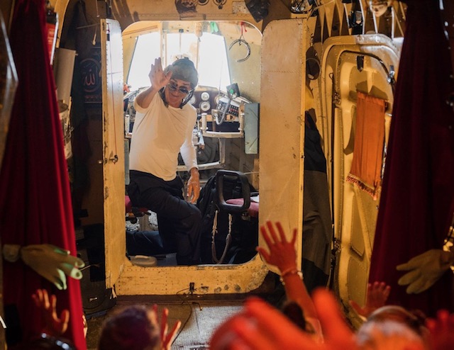 Outside; While the +/- 27 lucky passengers inside are gripped by the madness, outside, a second performer ignites the rest of the scene. Rocking the fuselage like a lunatic, spraying water through windows, hurling props inside, the entire aircraft becomes a theatrical beast. Passersby stop. Watch. Wonder. And wish they were inside. The lurching machine of theatre pulls them in and spits out disbelief.