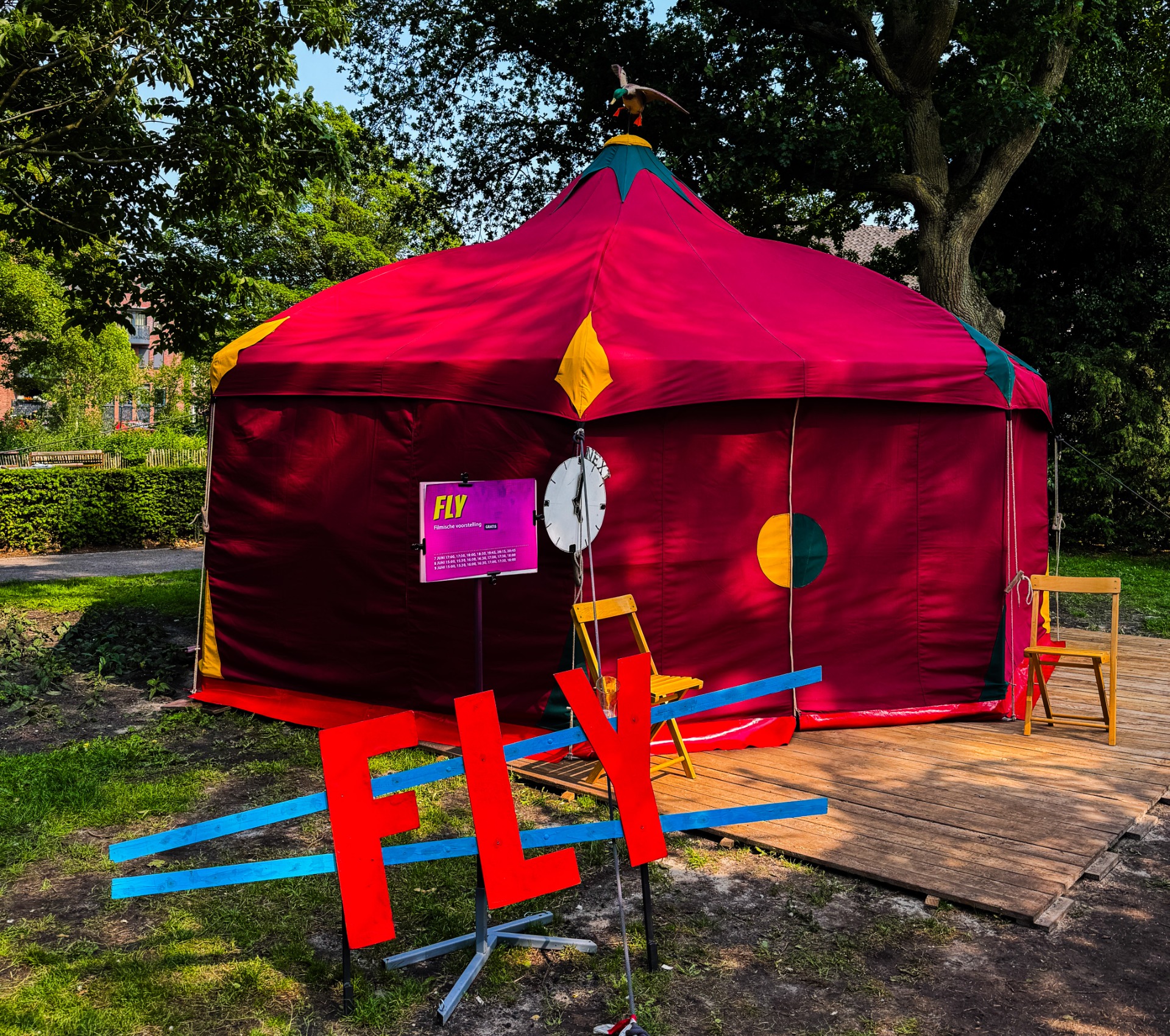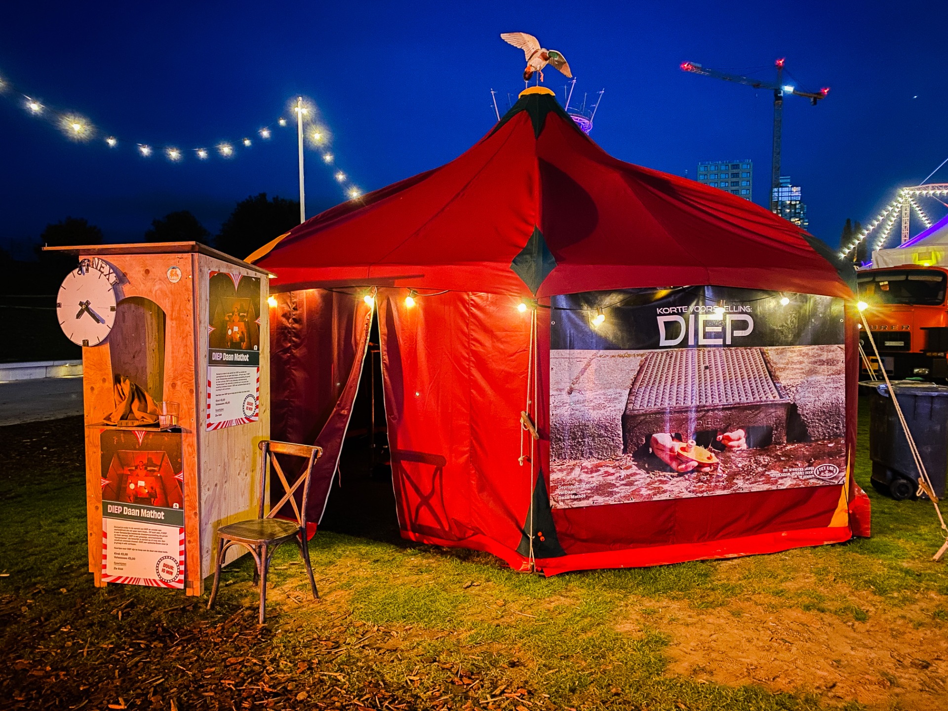 De voorstellingen DIEP, Fly en AF kan worden uitgevoerd in onze eigen 8 hoekige tent "de Woerd" met een diameter van 6 meter. De tent is ongeveer 3,5 meter hoog. Alle voorstellingen kunnen uiteraard ook gespeeld worden in een andere indoor setting die min of meer te verdonkeren is.